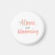 A beautiful, soft-focus graphic featuring the inspiring message: "Alone, but blooming." The text uses a delicate, textured peach/coral script for the main words ("Alone" and "blooming") and a simple black script for "but." The design is accented with small watercolor-style flowers and green leaves, emphasizing themes of self-growth, independence, and flourishing even when in solitude. It’s set against a light, neutral grey background, making it perfect for an uplifting wall print, social media post, or phone wallpaper.