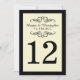 Elegant, classy 5x7 table card features black swirly flourishes on an ivory background, outlined with a black border. Click the CUSTOMIZE IT button to add your own text and and to separately add EACH CONSECUTIVE TABLE NUMBER you need. Comes in 5 colours. Matching invitations, RSVPs, cocktail napkins & more available. For questions or requests for other items featuring this design, please contact: cheryl@cheryldanielsart.com. "Swirly Flourish with Frame" by Cheryl Daniels © 2015.
