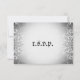 Flourish RSVP Bride & Groom Skeleton Wedding reception Dinner Cards. Grey and white background surrounded by ironwork looking flourishes make this rsvp truely a great piece of art. a cute skeleton bride and groom complete with tophat, bowtie, veil and heart adorn the front. Sophisticated and unique your guests will be able to tell you if they are coming to your wedding or not.