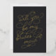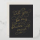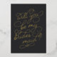 Ask your best girls to stand with you with these beautiful cards. Design features "will you be my bridesmaid" in embellished gold foil script typography with a subtle heart worked into the design, on a soft black background. Add a custom personalised message to the back in modern handwritten script and classic serif lettering.