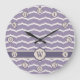 Enjoy a fun zigzag pattern with a pretty flourish as the beige zigzag curves up and down to points in a shape inspired by lotus petals. This flourished zigzag sits on top of a pleasant lilac background for a soothing contrast. Customise the initial on this clock to make a decoration for your home that is unique to you.