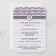 This sweet invitation features a fun zigzag pattern with a pretty flourish as the beige zigzag curves up and down to points in a shape inspired by lotus petals. This flourished zigzag sits on top of a pleasant lilac background for a soothing contrast. A deeper purple ribbon with a darker cream border and matching flourished box hold a monogram set above a lighter section on the lower portion of the card where you can find sample text that you can customise to create a personalised invite for your event.