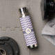 Enjoy a fun zigzag pattern with a pretty flourish as the beige zigzag curves up and down to points in a shape inspired by lotus petals. This flourished zigzag sits on top of a pleasant lilac background for a soothing contrast. Customise the monogram with your initial to create a water bottle that is uniquely yours.