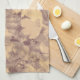 Flower and leaf camouflage pattern on beige tea towel