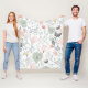Flower and leaf pattern in tropical green and pink fleece blanket