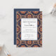 Wedding invitation with a repeating pattern of decorative elements in flower, star and sun shapes.