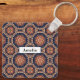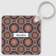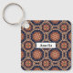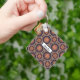 Keychain with a repeating pattern of decorative ornate elements in flower, star and sun shapes.