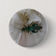 This button features a photograph of a bluish green colored British species of Flower Beetle sitting on a white Carnation flower. The photo was taken using macro photography to show the detail and color of this beautiful beetle species.
