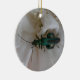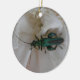 This pretty pendant style ornament features a photograph of a bluish green coloured British species of Oil Beetle sitting on a white Carnation flower. The photo was taken using macro photography to show the detail and colour of this beautiful beetle species. There is customisable white text on the back of the ornament allowing you to personalise it.