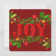 A simple traditional modern holiday greeting featuring a message of JOY surrounded by a colourful garland of cheerful floral poinsettias, holly and berries, Available in an assortment of lovely paper options. This little greeting is customisable with your choice of text on the back of the card. Make this a very special card with your personal message.