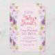 A baby shower invitation with pink, lavender and blue floral sides against a light pink background. Lovely for spring or any time of the year. (<a href='https://www.freepik.com/free-vector/baby-shower-invitation-with-flowers-in-watercolor-style_1892970.htm'>Designed by Freepik</a>). <br/><br/>The card is easy to customise with your wording, font, font colour and choice of six paper types.<br/><br/>Not exactly what you're looking for? All our products can be custom designed to meet your needs at no extra charge.<br/><br/>Simply contact us at askcottonlamb@gmail.com<br/><br/>Coordinating products available: