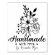 This "Handmade" rubber stamp features a flower bouquet with a custom name.