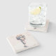 The coasters are gorgeous, a quality feel and heavy weight. They look like a precious archeological find. A rustic stone juxtaposed with a modern floral black and white print. I like the way the print goes slightly imperfect on the cut stone edges giving them a kind-of natural beauty.