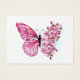 Flower arrangement of pink butterfly with pink Japanese cherry blossoms on white background.