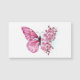Flower arrangement of pink butterfly with pink Japanese cherry blossoms on white background.