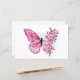 Flower arrangement of pink butterfly with pink Japanese cherry blossoms on white background.