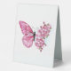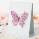 Flower arrangement of pink butterfly with pink Japanese cherry blossoms on white background.