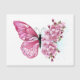 Flower arrangement of pink butterfly with pink Japanese cherry blossoms on white background.