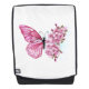 Flower arrangement of pink butterfly with pink Japanese cherry blossoms on white background.