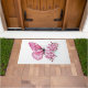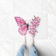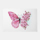 Flower arrangement of pink butterfly with pink Japanese cherry blossoms on white background.