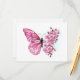 Flower arrangement of pink butterfly with pink Japanese cherry blossoms on white background.