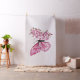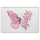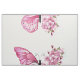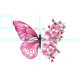 Flower arrangement of pink butterfly with pink Japanese cherry blossoms on white background.