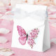 Flower arrangement of pink butterfly with pink Japanese cherry blossoms on white background.