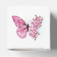 Flower arrangement of pink butterfly with pink Japanese cherry blossoms on white background.