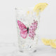 Flower arrangement of pink butterfly with pink Japanese cherry blossoms on white background.