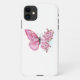 Flower arrangement of pink butterfly with pink Japanese cherry blossoms on white background.