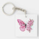 Flower arrangement of pink butterfly with pink Japanese cherry blossoms on white background.