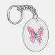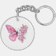 Flower arrangement of pink butterfly with pink Japanese cherry blossoms on white background.