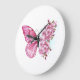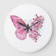 Flower arrangement of pink butterfly with pink Japanese cherry blossoms on white background.