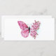 Flower arrangement of pink butterfly with pink Japanese cherry blossoms on white background.