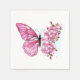 Flower arrangement of pink butterfly with pink Japanese cherry blossoms on white background.