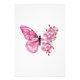 Flower arrangement of pink butterfly with pink Japanese cherry blossoms on white background.
