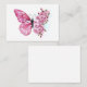 Flower arrangement of pink butterfly with pink Japanese cherry blossoms on white background.