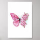 Flower arrangement of pink butterfly with pink Japanese cherry blossoms on white background.