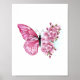 Flower arrangement of pink butterfly with pink Japanese cherry blossoms on white background.