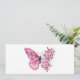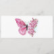 Flower arrangement of pink butterfly with pink Japanese cherry blossoms on white background.