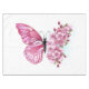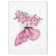 Flower arrangement of pink butterfly with pink Japanese cherry blossoms on white background.