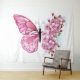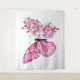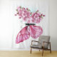 Flower arrangement of pink butterfly with pink Japanese cherry blossoms on white background.