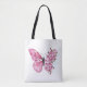 Flower arrangement of pink butterfly with pink Japanese cherry blossoms on white background.