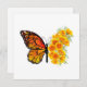 Orange, detailed monarch butterfly with wing decorated with yellow, vibrant California poppy on white background.