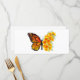 Orange, detailed monarch butterfly with wing decorated with yellow, vibrant California poppy on white background.