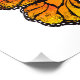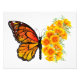 Orange, detailed monarch butterfly with wing decorated with yellow, vibrant California poppy on white background.