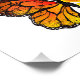 Orange, detailed monarch butterfly with wing decorated with yellow, vibrant California poppy on white background.