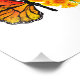Orange, detailed monarch butterfly with wing decorated with yellow, vibrant California poppy on white background.