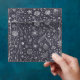 Delicate botanical flower drawings in white on a dark grey chalkboard background for a modern floral vibe.