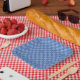 Flower Checkered Pattern No. 01 - Light Blue Paper Plate